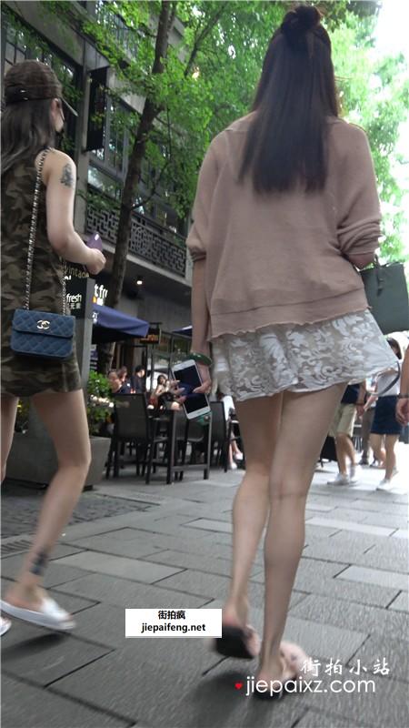 4K - 白色蕾丝V领连衣裙气质街拍美腿美女 [1.06 GB]