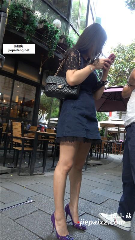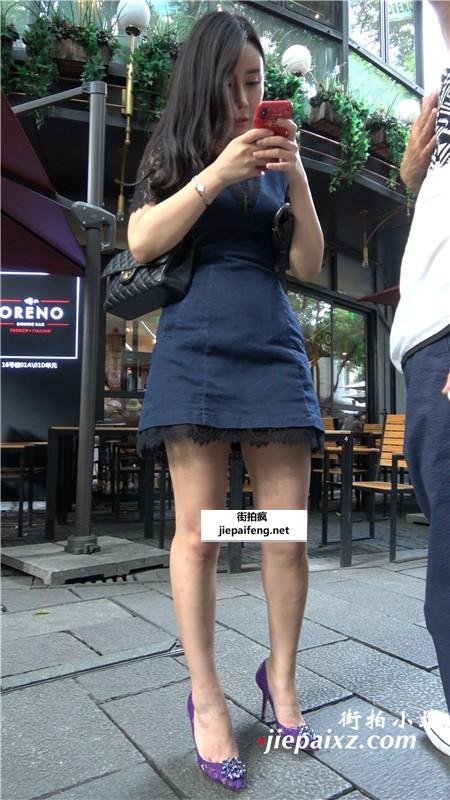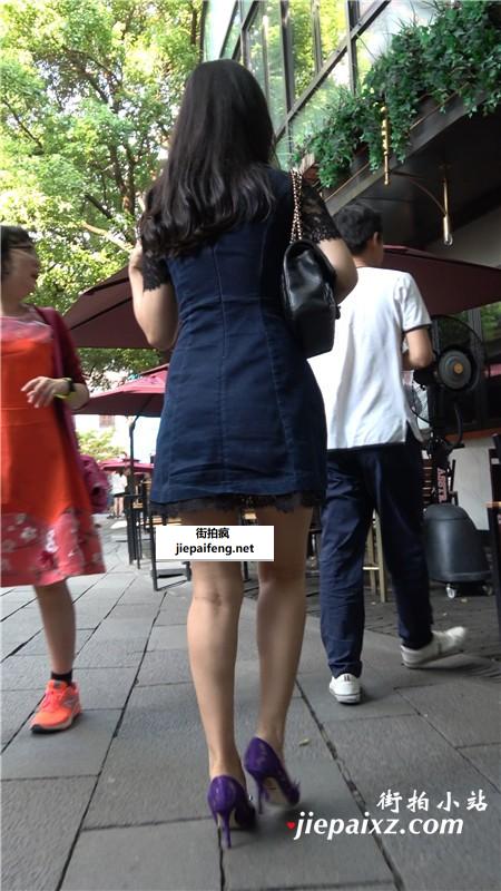 紫色高跟鞋街拍连衣裙性感美女 [707 MB]
