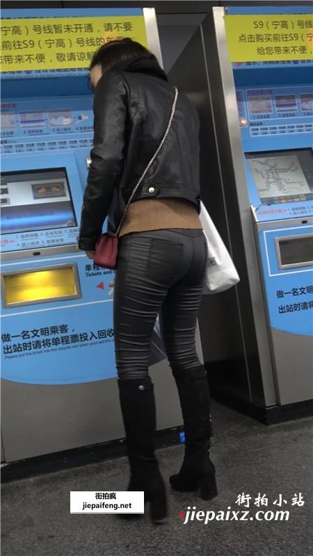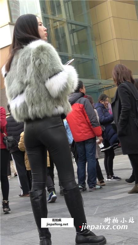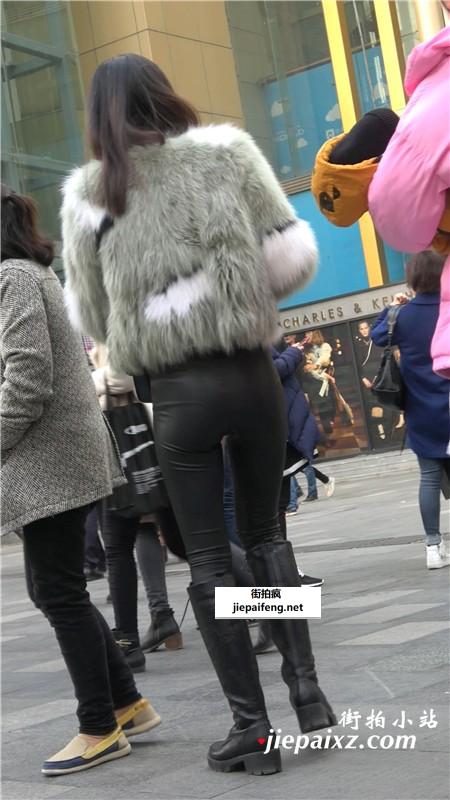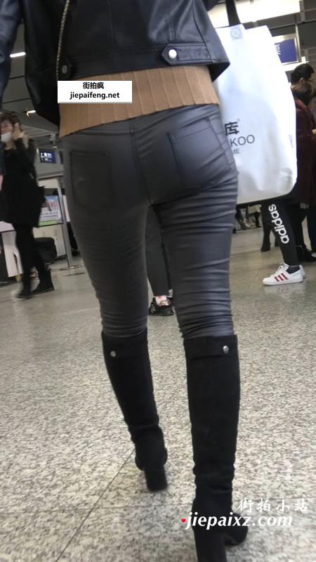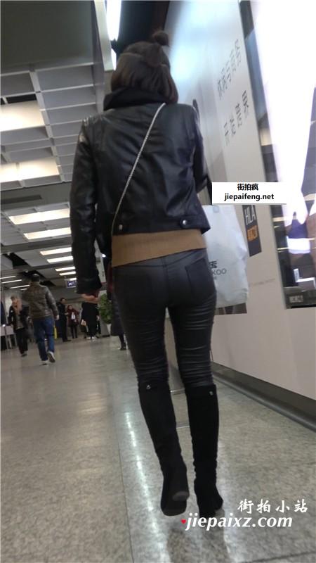 黑色皮靴街拍紧身皮裤美女 [632 MB]