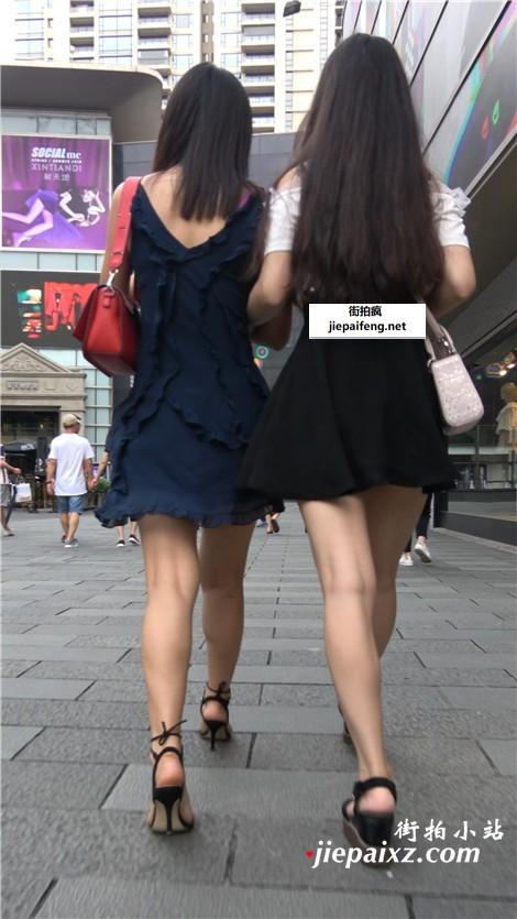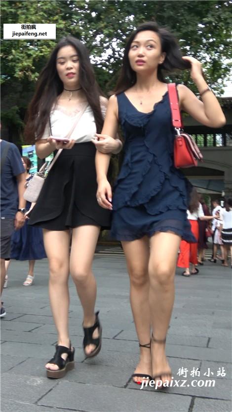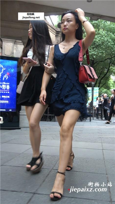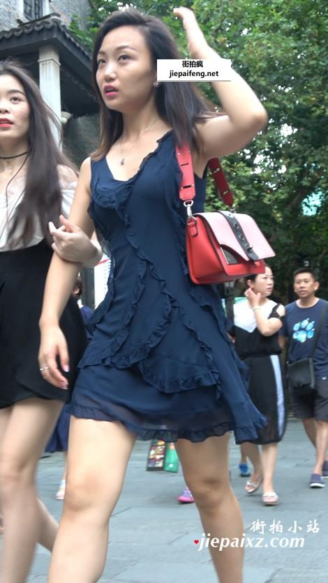 4K - 街拍深蓝色连衣裙美腿美女 [786 MB]