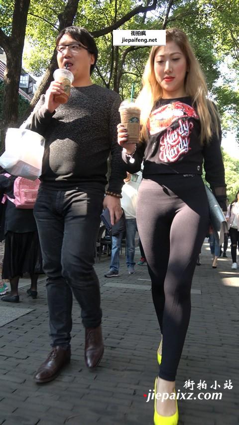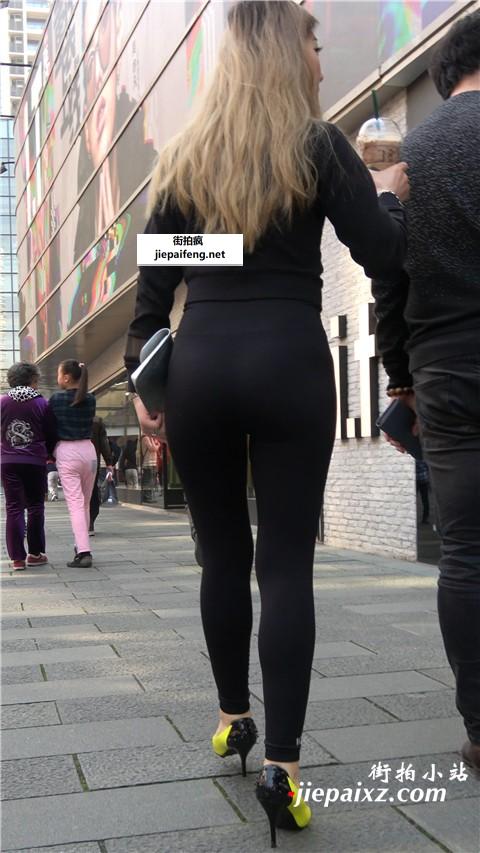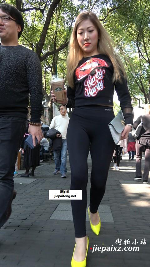 4K - 街拍紧身弹力裤性感黄色高跟鞋美女 [770 MB ]