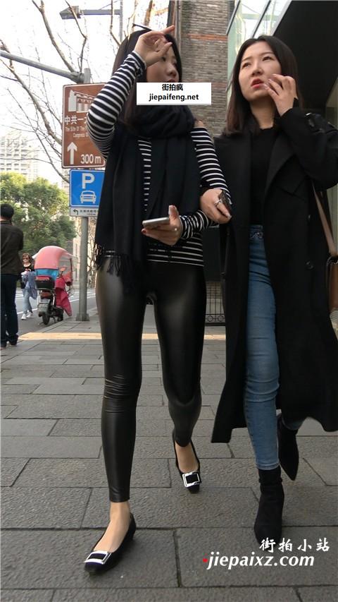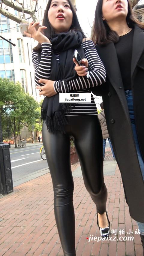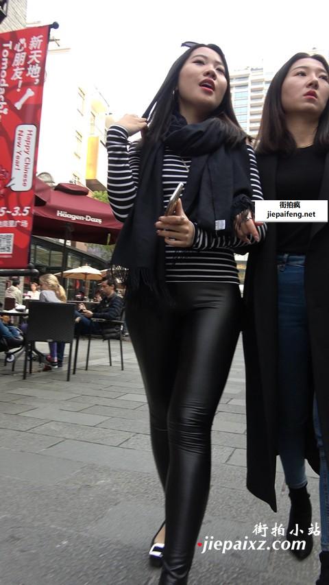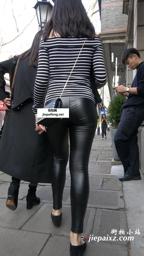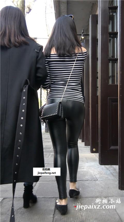 4K 黑色紧身皮裤街拍美臀美女 [756 MB]