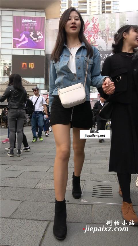 4K 街拍性感短裙美腿牛仔外套气质美女 [1.54 GB]