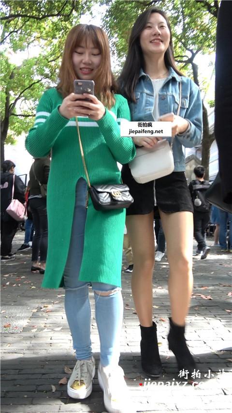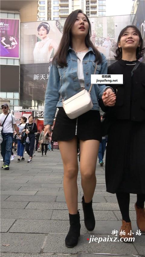 4K 牛仔外套短裙街拍美女笑容甜美