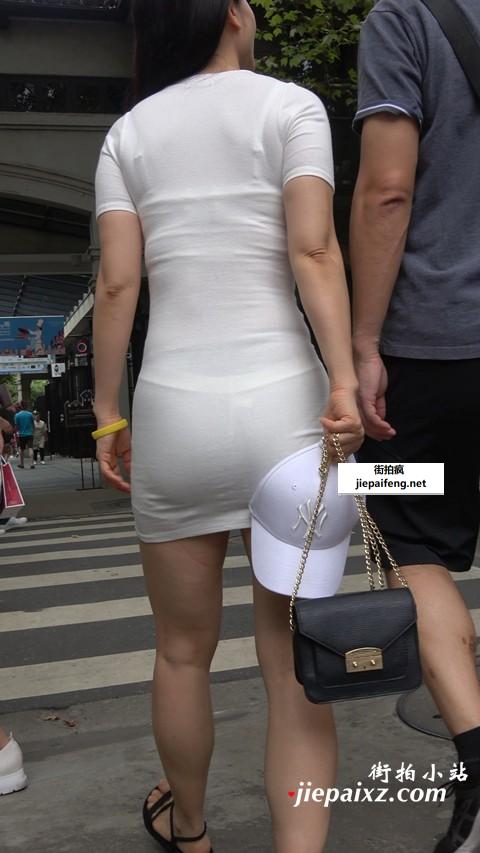 4K 凹凸有致的白色紧身超短裙美女街拍