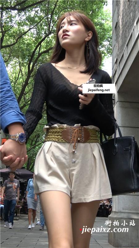 V领低胸黑色蕾丝衣精致街拍美女 [609 MB]