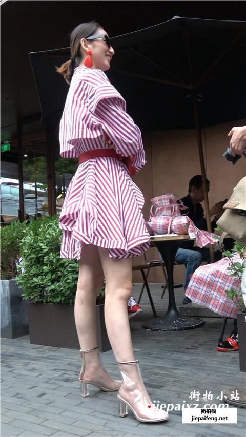 4K - 街拍性感条纹裙高跟鞋美女姐姐 [1.05 GB/MP4]