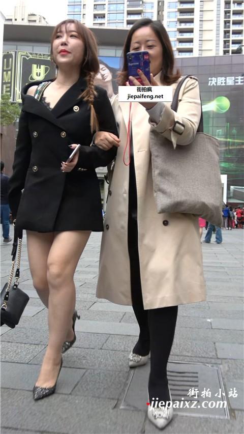 性感高跟长腿黑外套街拍美女 [1.01 GB/MP4]