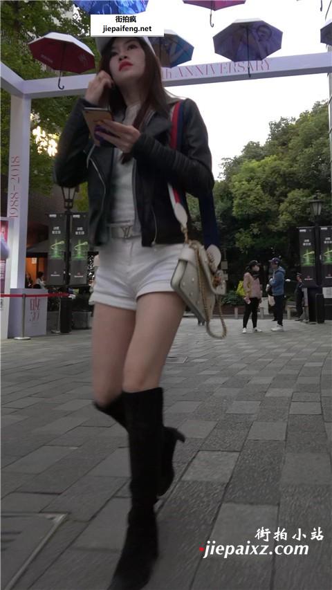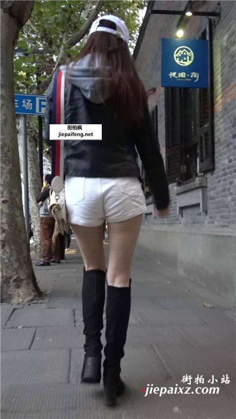 白色鸭舌帽长筒靴街拍美腿苗条美女 [1.25 GB/MP4]