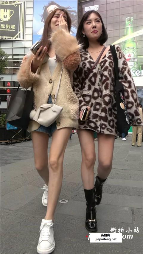 4K - 时尚超短热裤美腿街拍高颜值姐妹 [1.00 GB/MP4]