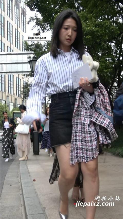 4K - 条纹衬衫短裙气质街拍高跟美女 [1.23 GB/MP4]