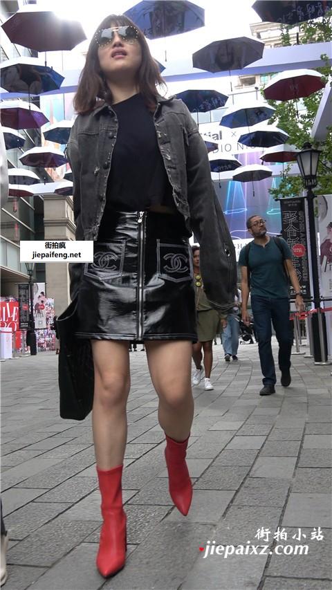 4K - 红靴子街拍短裙美腿气质墨镜美女 [1.12 GB]