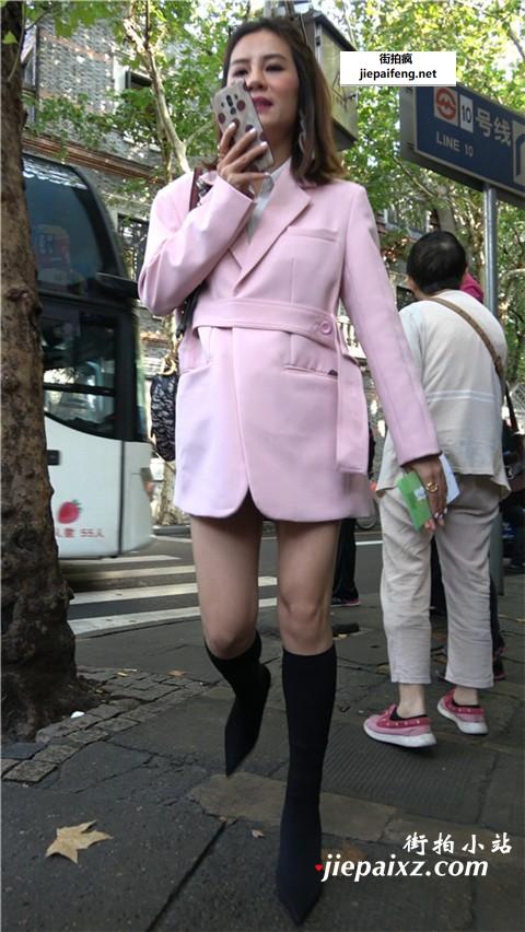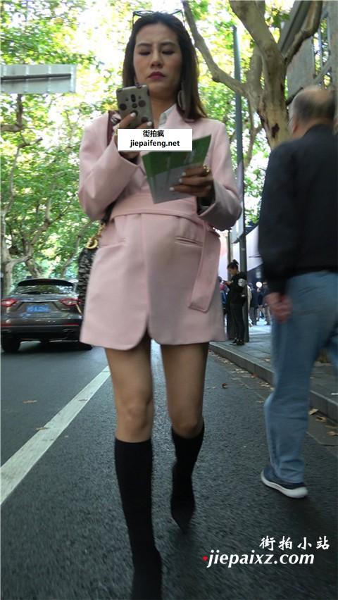 4K - 粉色长款大衣街拍美腿熟女 [681 MB/MP4]