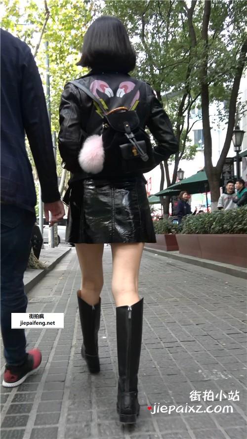 街拍皮短裙长靴短发姑娘 [1.29 GB/MP4]