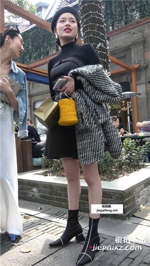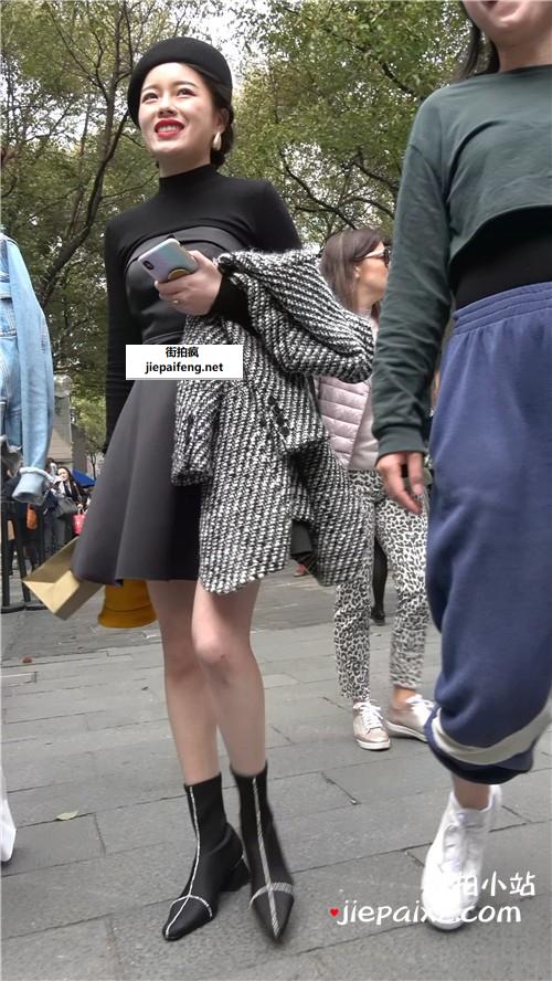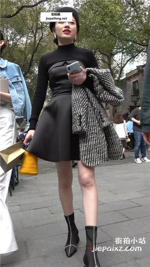4K - 街拍一身打扮都是黑色的美腿姑娘 [1.76 GB/MP4]