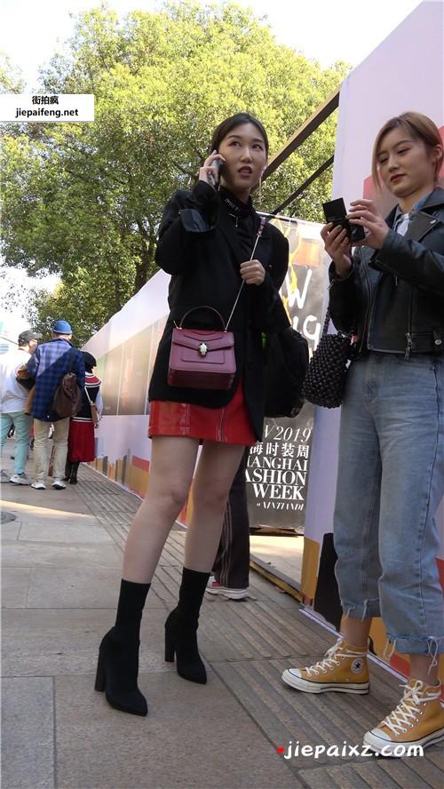 4K - 红色皮短裙短靴天生丽质街拍美女小姐姐 [626 MB/MP4]