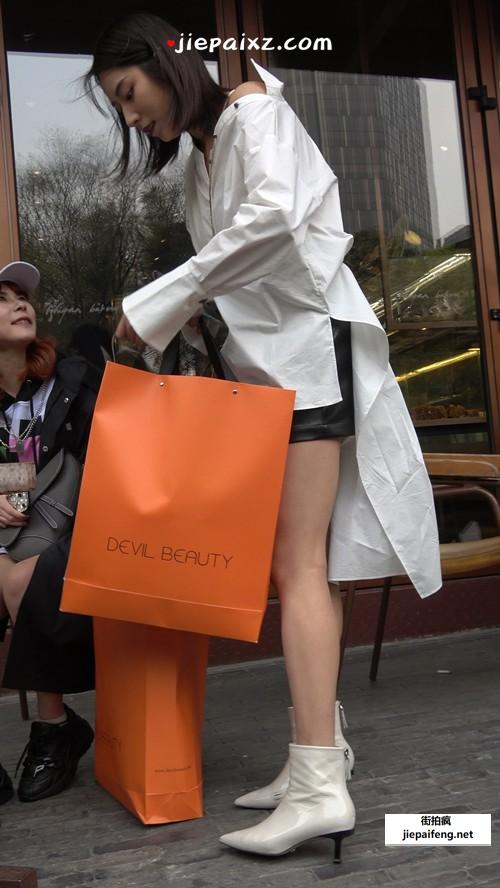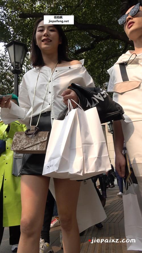4K - 黑色皮短裙时尚性感街拍美女 [1.37 GB/mp4]