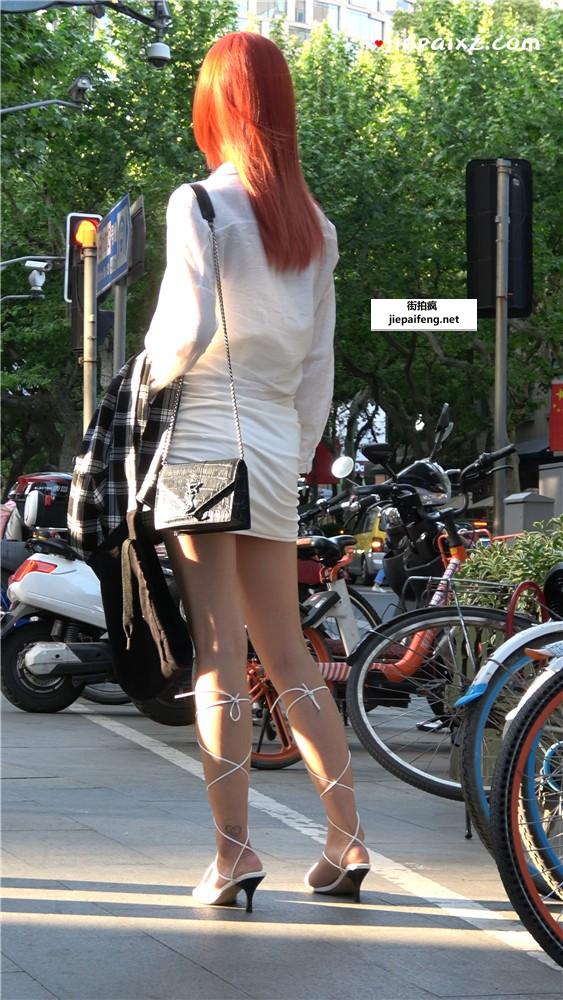 4K - 街拍酒红色头发白裙美眉 [1.27 GB/MP4]