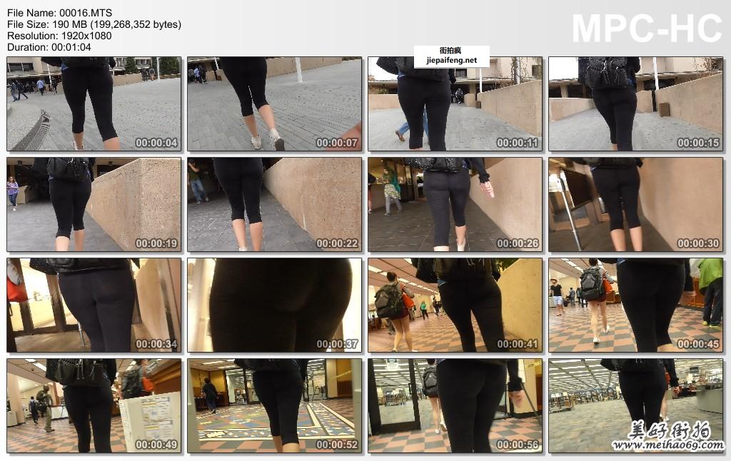跟拍妹子黑色紧身微透打底裤,性感的肉臀[MP4/101M]