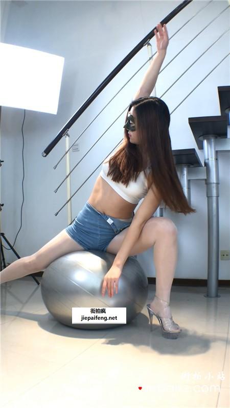 秀舞蹈工作室心心牛仔热裤丝袜瑜伽球上表演 [219 MB]