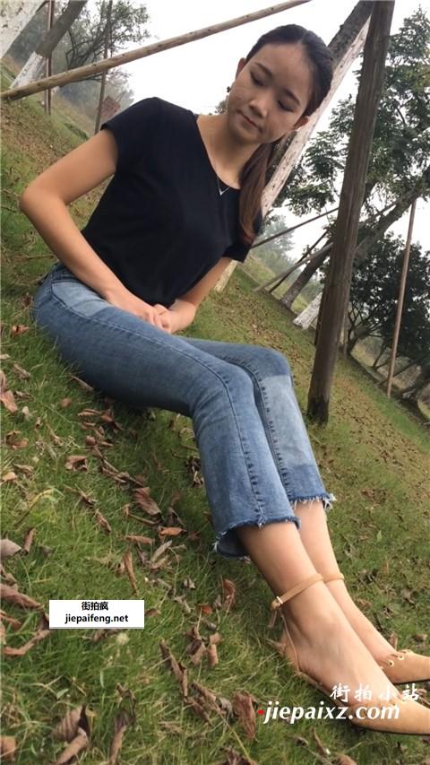 户外约拍的紧身蓝牛美眉 [742 MB]