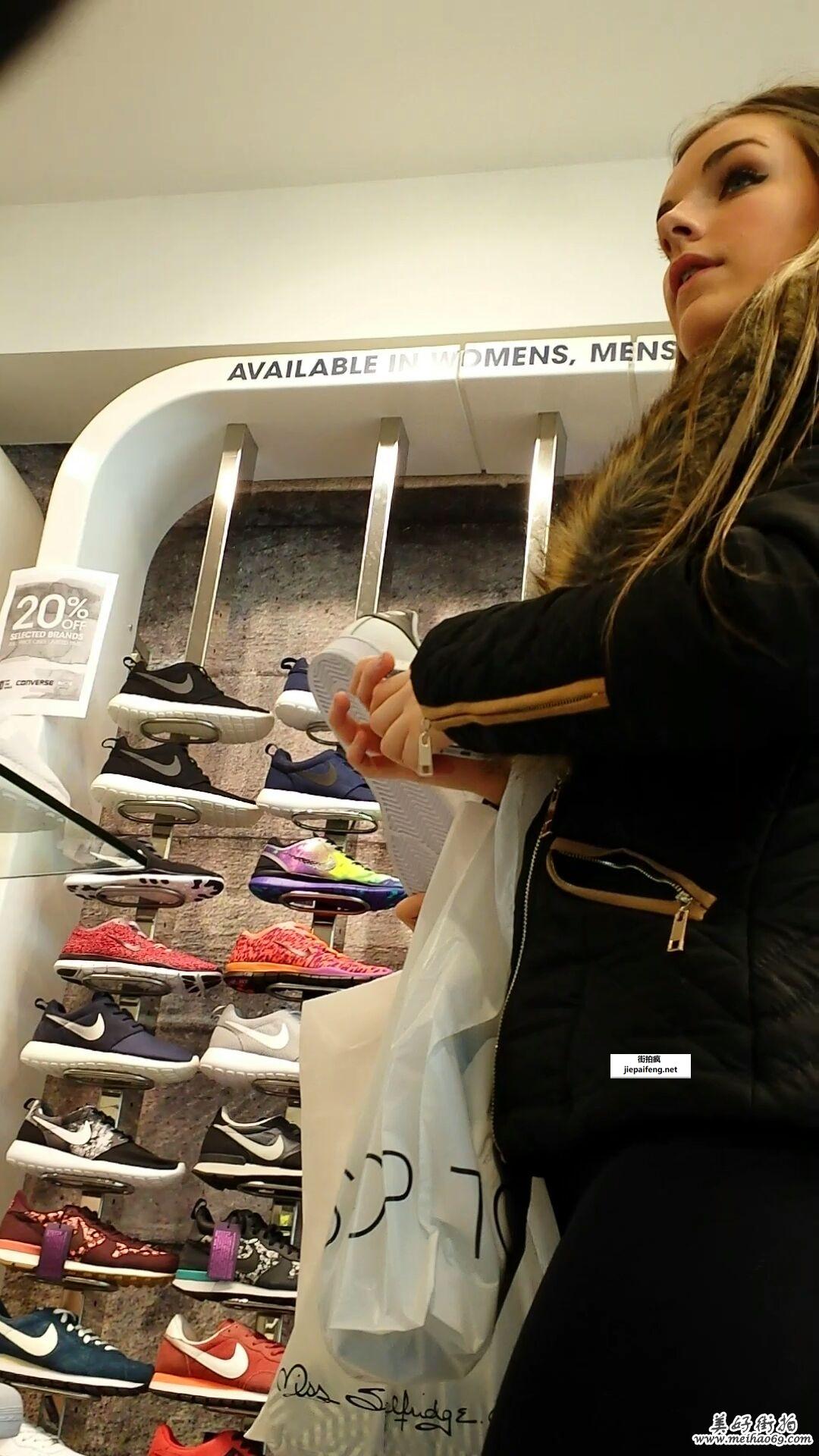买鞋子的黑色打底裤美眉性感丰满圆润[WMV/85M]