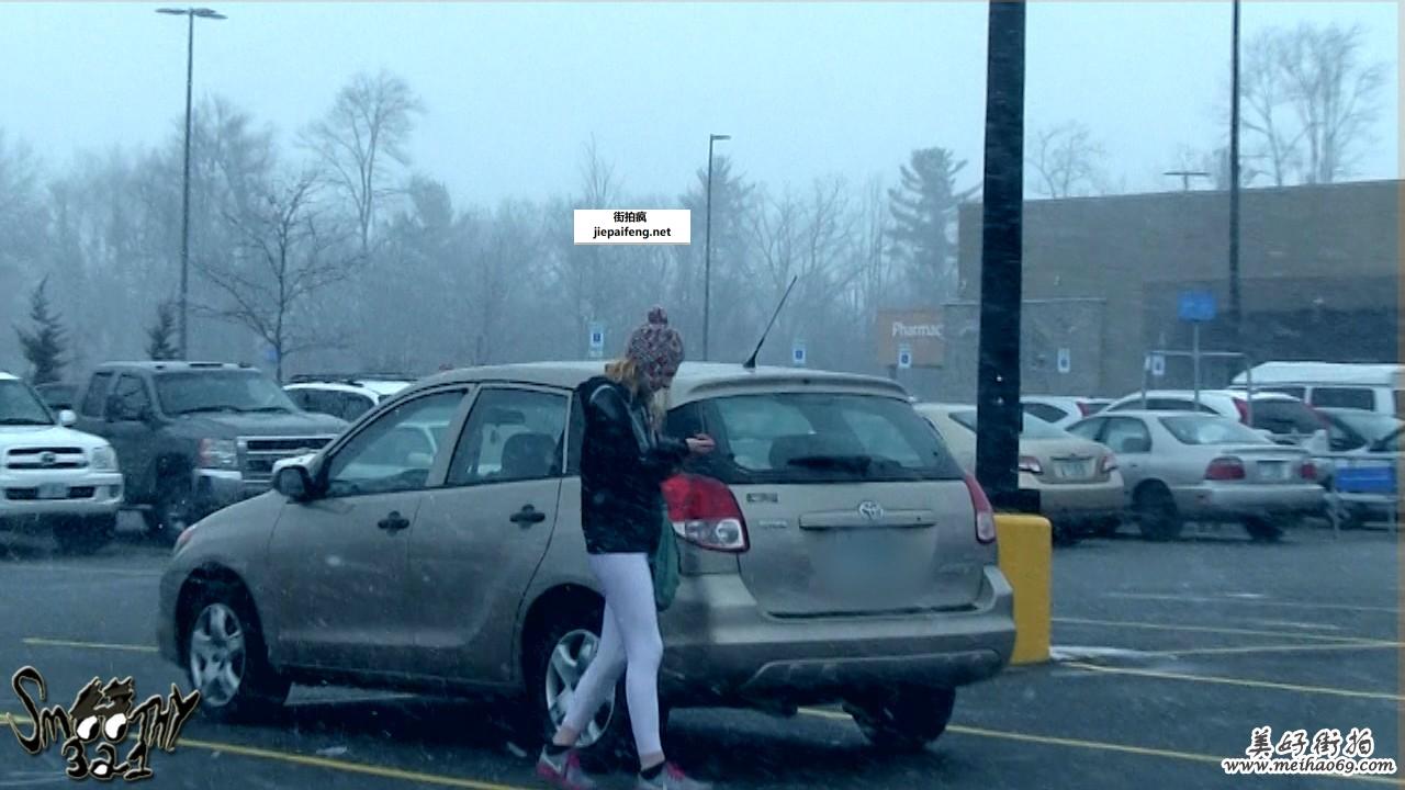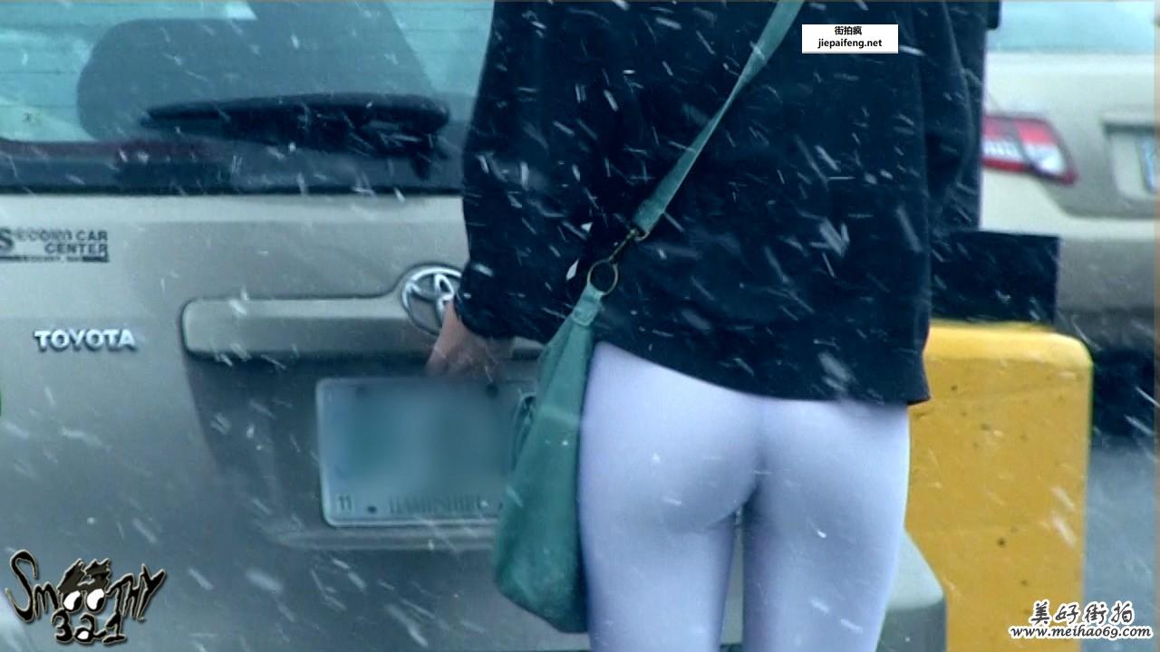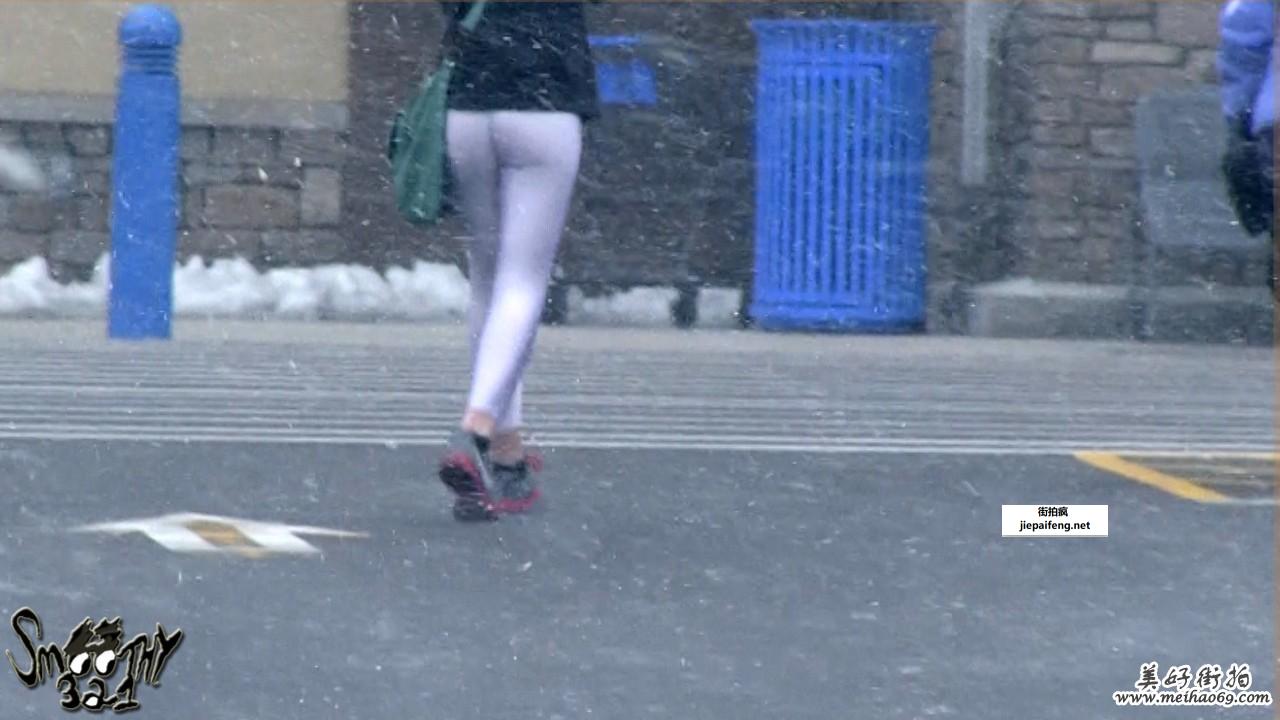 雪中白色有光泽的紧身氨纶裤女孩,性感的屁屁上部[MP4/200M]