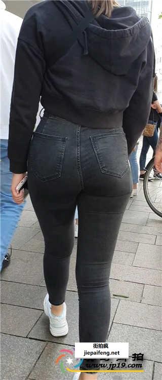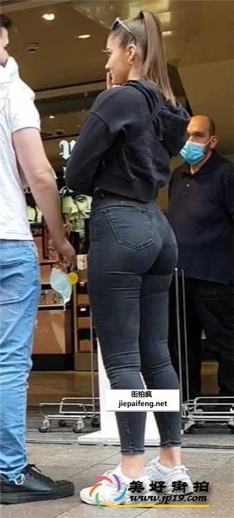 街拍黑色牛仔裤马尾辫金发妹子[MP4/536M]