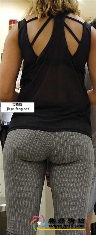 条纹紧身马裤性感圆臀金发洋妞[MP4/718M]