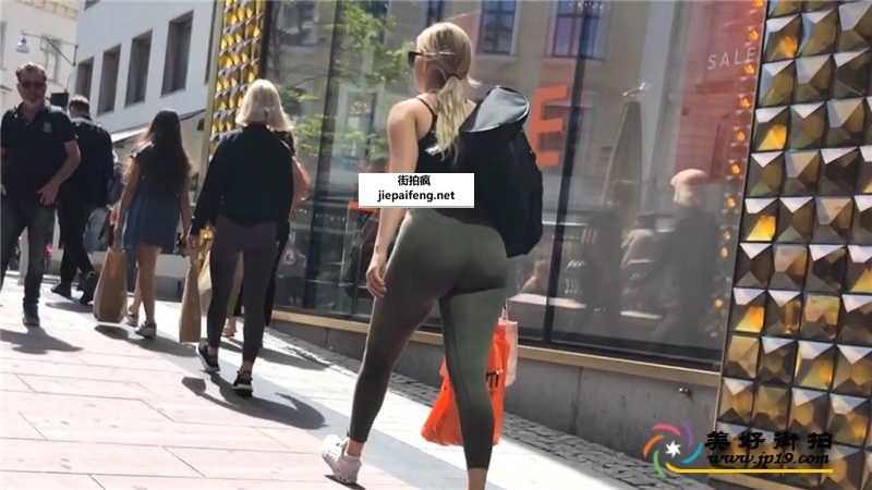 街头跟拍绿色瑜伽裤饱满丰臀金发洋妞[MP4/248M]