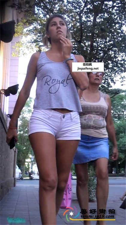 街拍白色热裤长腿圆臀洋妞[MP4/360M]