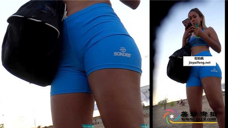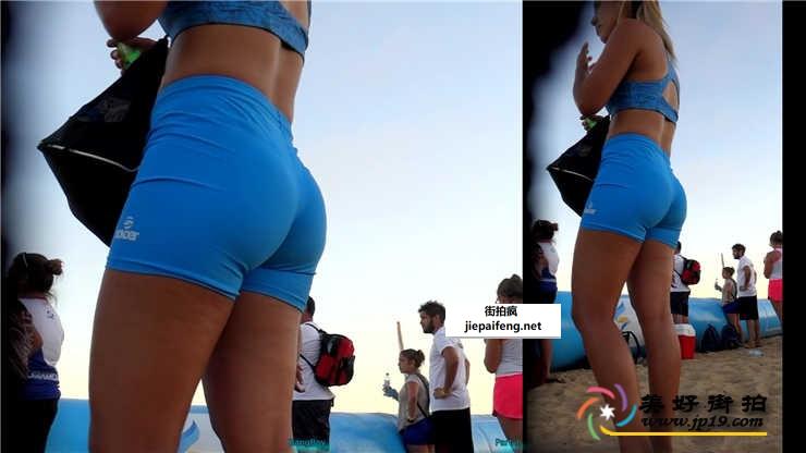 蓝色紧身短裤金发少妇长腿翘臀[MP4/760M]