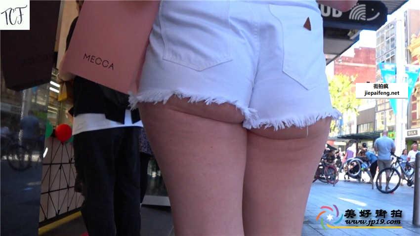 街拍白色牛仔热裤极品圆臀妹子[MP4/706M]