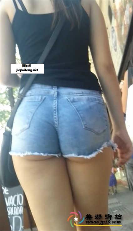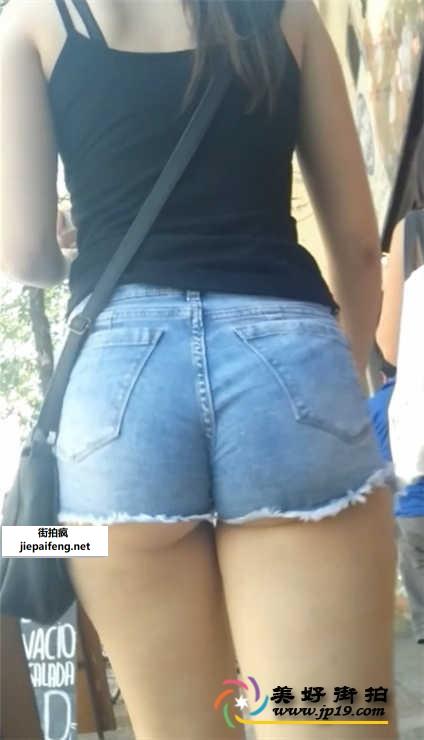 蓝色牛仔热裤极品圆润性感翘臀美眉[MP4/180M]