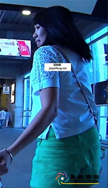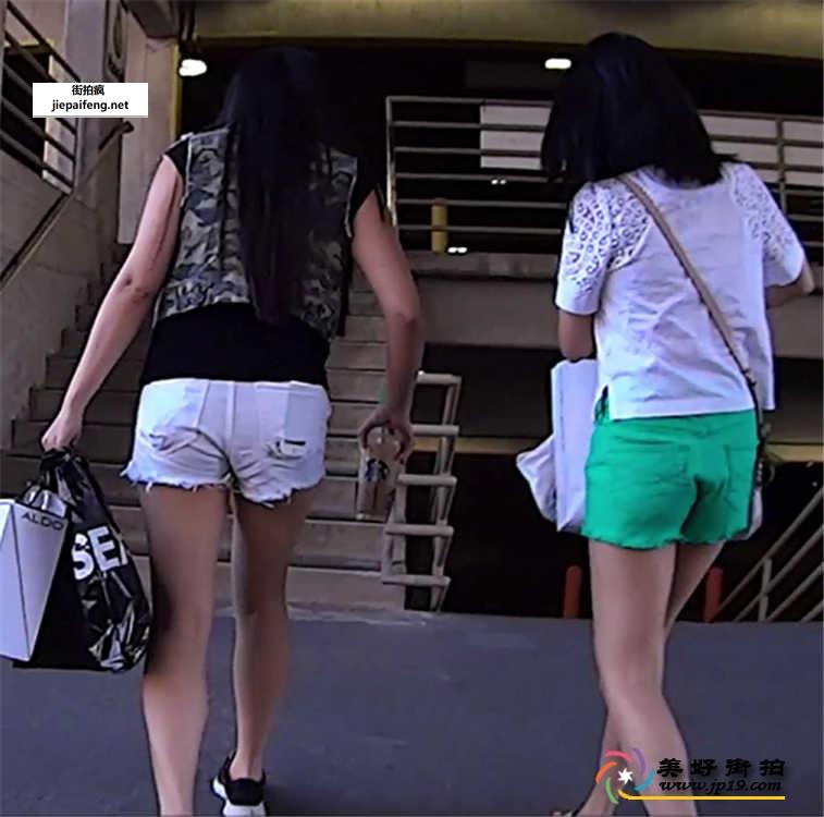 跟拍白色和绿色牛仔热裤两个亚洲美眉[MP4/139M]