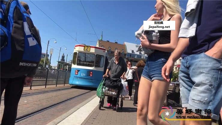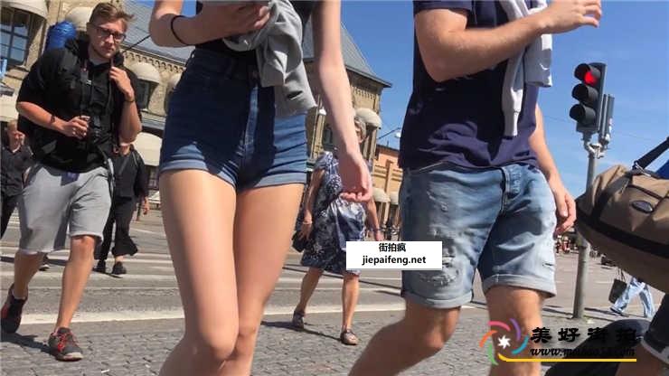 街拍高腰牛仔短裤金发美女性感白腿圆润翘臀[MP4/229M]