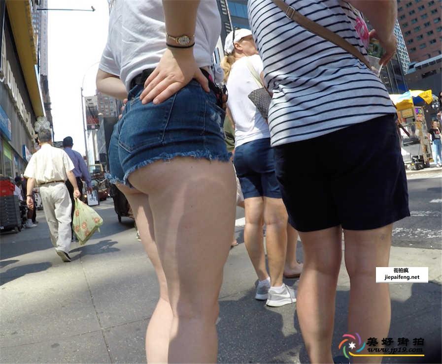 街拍蓝色牛仔热裤金发妹子极品饱满圆翘臀[MP4/750M]