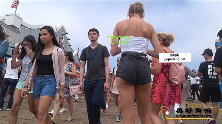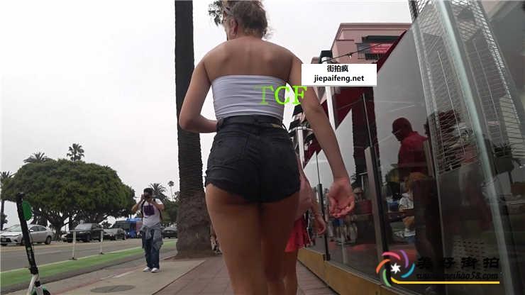 街拍黑色紧绷牛仔热裤性感身材大腿翘臀美眉[MP4/388M]