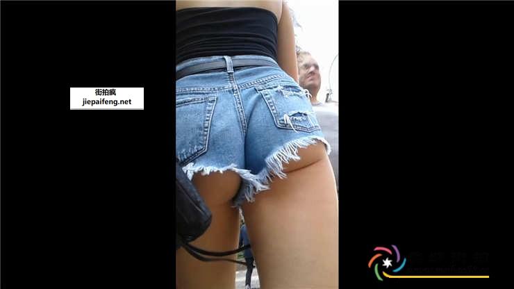 街拍蓝色牛仔热裤美眉极品圆翘屁股[MP4/766M]