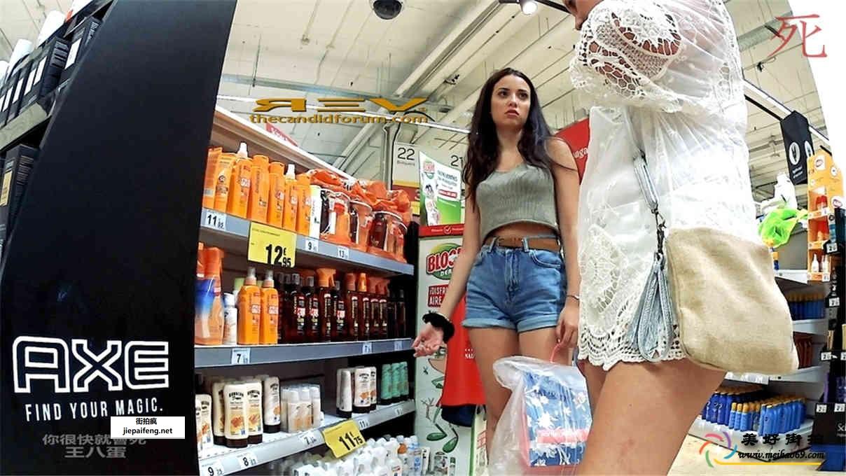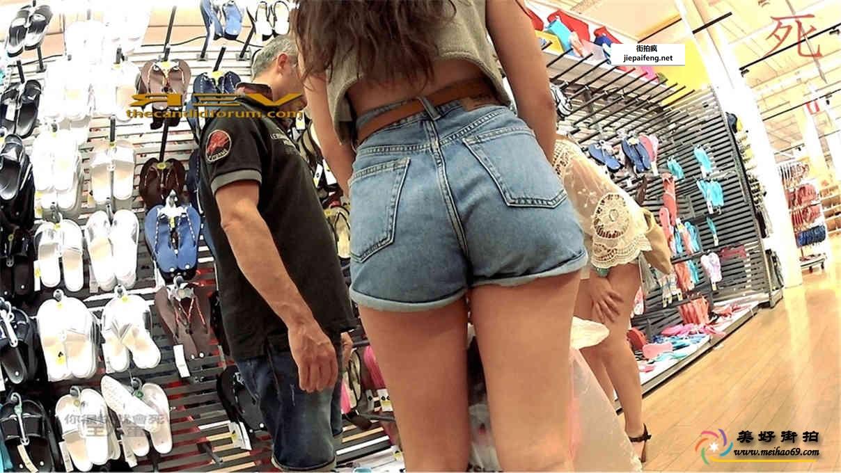 超市购物的蓝色牛仔热裤性感长腿圆润翘臀美女[MP4/556M]