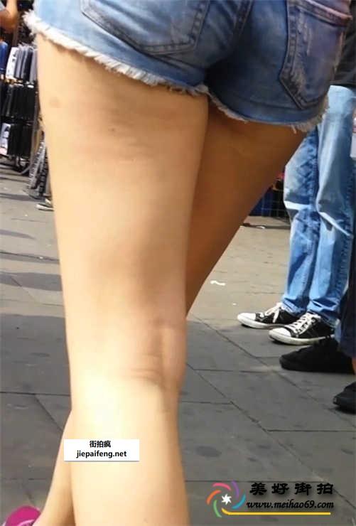 街拍蓝色牛仔热裤美眉性感美腿[MP4/470M]