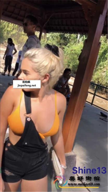 街拍黑色热裤大胸金发洋妞圆翘臀[MP4/190M]