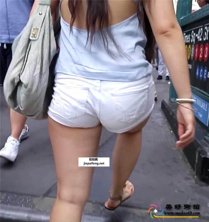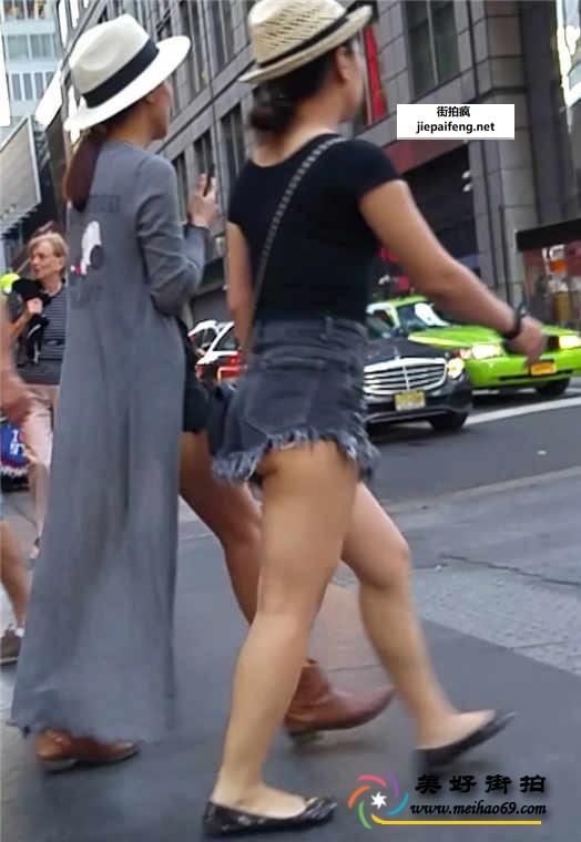 街拍白色和蓝色热裤两个亚洲美眉圆润翘臀[MP4/342M]