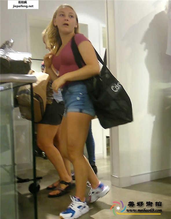 街拍蓝色和白色牛仔热裤两个美眉极品饱满圆润翘臀[MP4/815M]