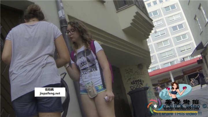 街拍蓝色牛仔热裤金发美眉性感饱满圆臀[MP4/550M]