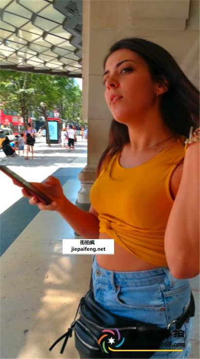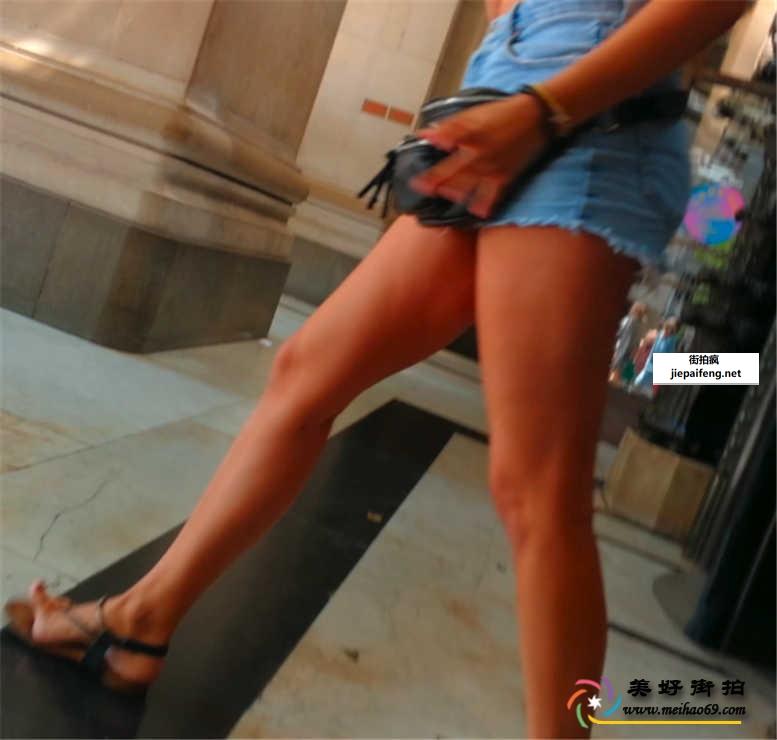 街拍蓝色牛仔热裤性感长腿圆润翘臀美女[MP4/390M]