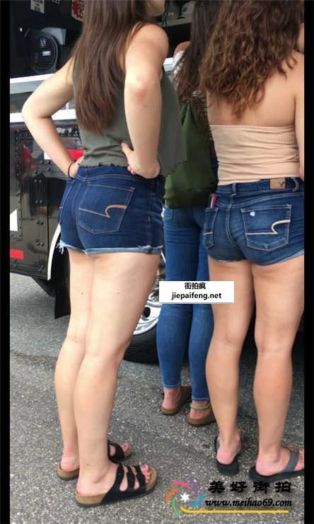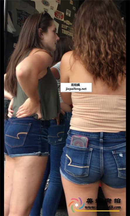 街拍两个蓝色牛仔热裤美眉性感圆润翘臀[MP4/350M]