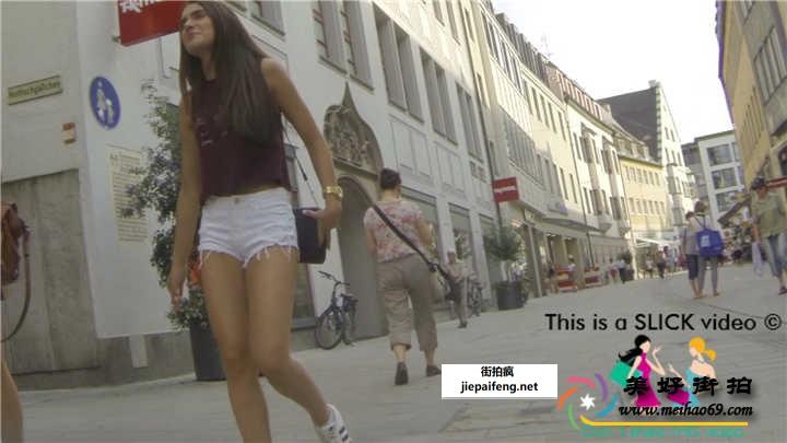 街拍白色牛仔热裤性感美腿圆臀美眉[MP4/466M]