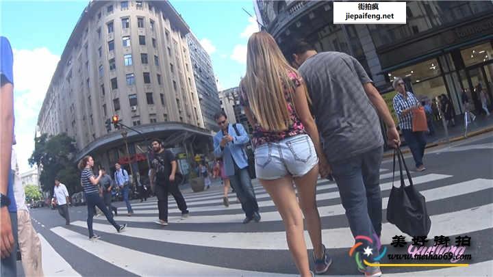 街头跟拍浅蓝牛仔热裤金发洋妞极品圆臀[MP4/464M]