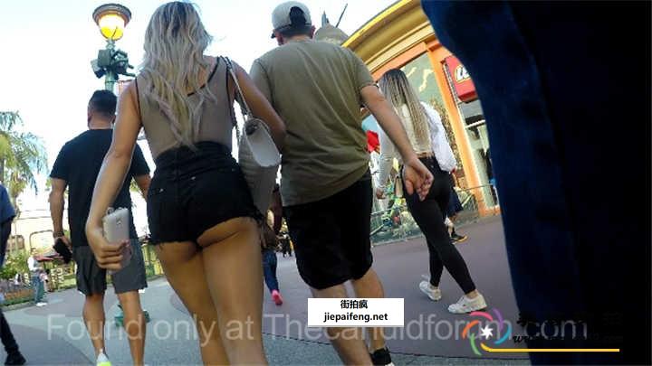 街拍黑色牛仔热裤金发少妇性感圆润翘臀[MP4/930M]